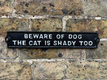 Beware of the Dog The Cat Is Shady Too - Cast Iron Sign