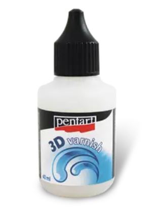 Pentart 3D varnish is a thick water-based varnish, which can be used to emphasize certain parts of a project by creating a 3D effect.