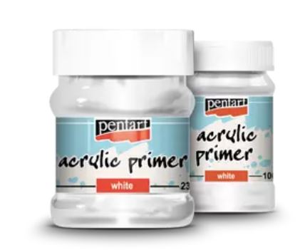 Pentart Acrylic Primer is a water-based white primer used to prepare any surface for further decoration. It's especially effective when used on non-porous surfaces that are difficult to paint, providing a strong bond between the surface and the coating layer. The purpose of the primer is to provide better adhesion for paint.