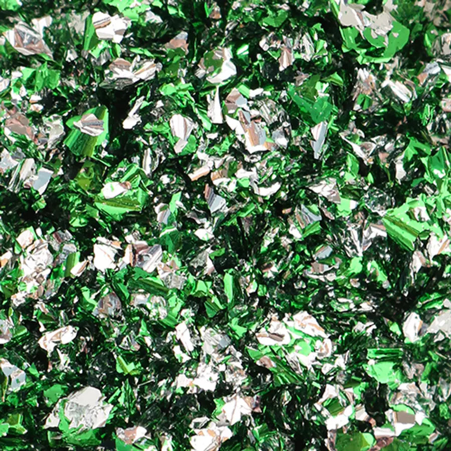 Pentart Coloured Foil Flakes are iridescent, irregular shaped foil flakes. Use with the tacky glue, or mix into transparent gels or varnishes. The effect is different on light and dark surfaces.