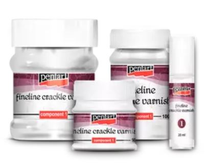 Pentart Fineline Crackle Varnish is a water-based, two component crackle varnish that creates an antique, cracked porcelain effect. Apply component 1 in an even layer and let it dry completely. Then spread component 2. The depth and the pattern of the cracks depends on the thickness of the layer and on the technique of the application. The layer will dry transparent and waterproof. Highlight the cracks with Antique Paste or Liquid Patina and then seal with a solvent based varnish.
