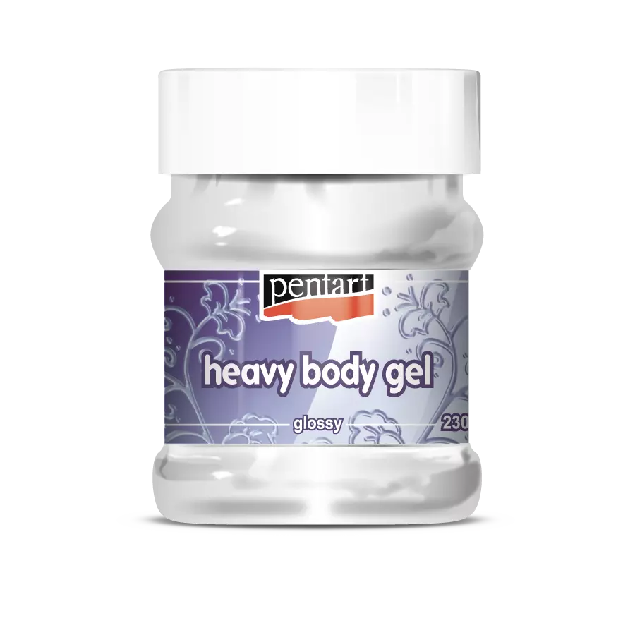 Pentart Heavy Body Gel Glossy is a water-based, soft gel that dries to a transparent finish to create 3D patterns. Use with stencils or create patterns using different shaping tools (smoothing and pattern plates, palette knife etc.). Mix with Pigment Powders or Transparent Pigments to create coloured and special effects.