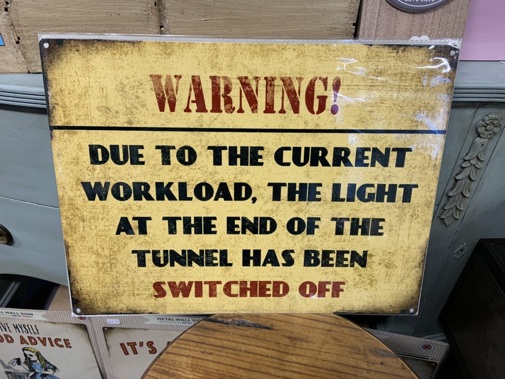 Warning Due to the Current Workload the Light at the end of the Tunnel has been Turned Off -  sign